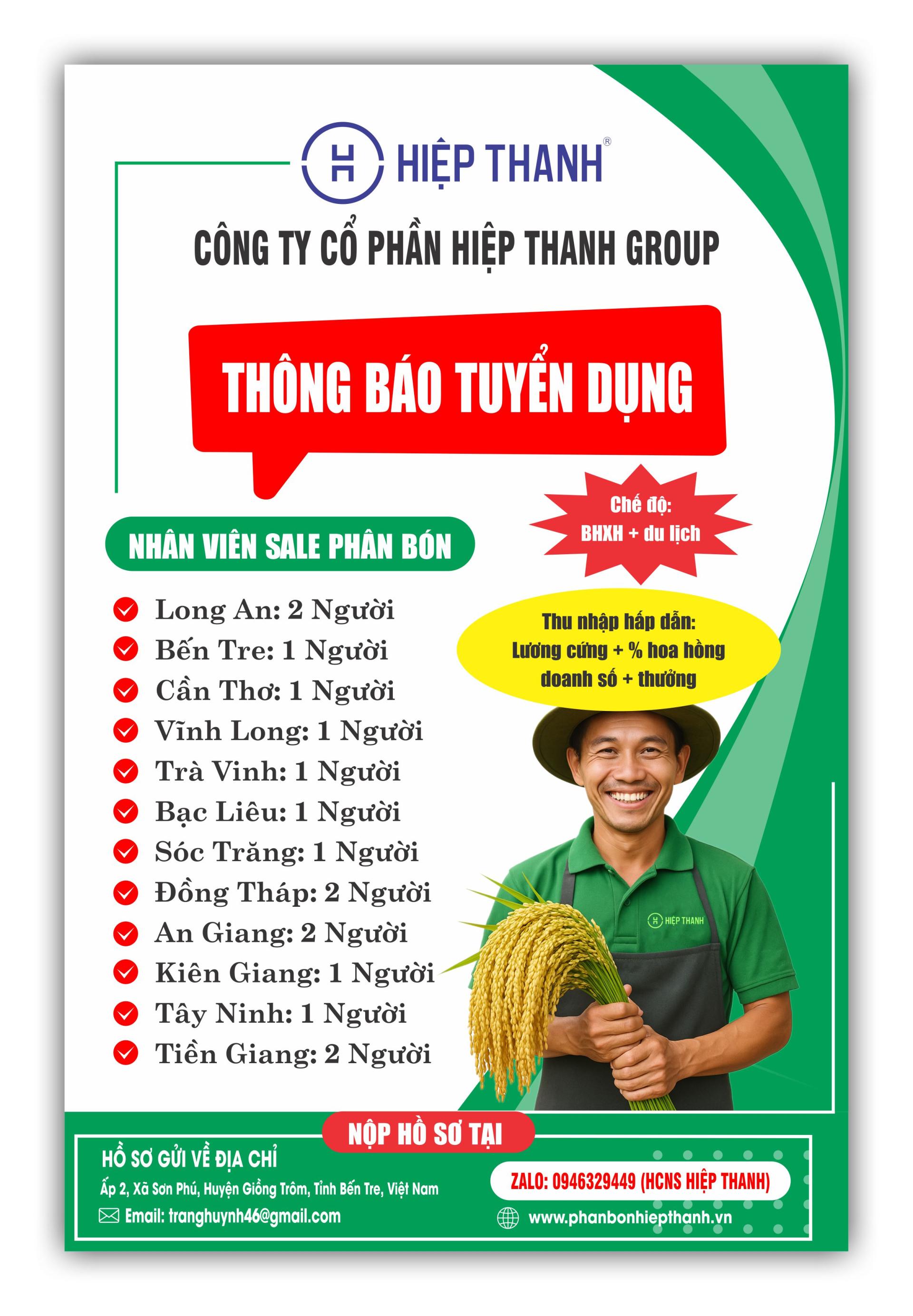 Công ty phân bón Hiệp Thanh Group– chuyên cung cấp các sản phẩm phân bón chất lượng cao phục vụ nông nghiệp bền vững – cần tuyển dụng: